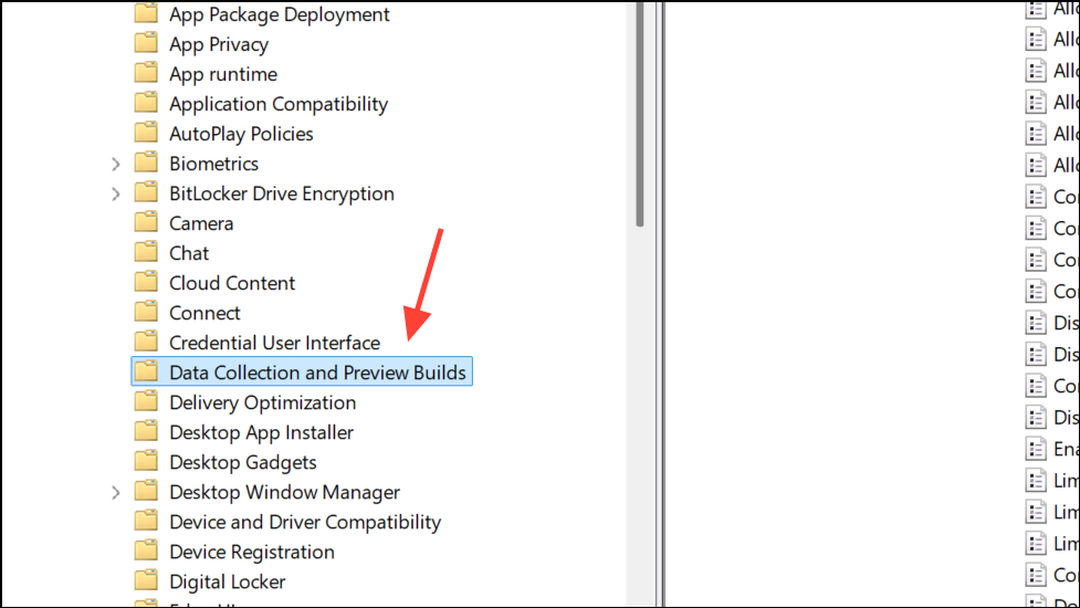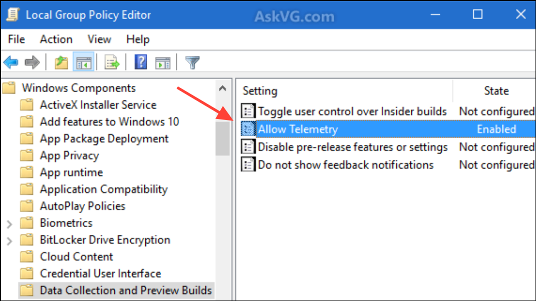 ステップ 2:に移動します[コンピューターの構成] > [管理用テンプレート] > [Windows コンポーネント] > [データ収集とプレビュー ビルド].
