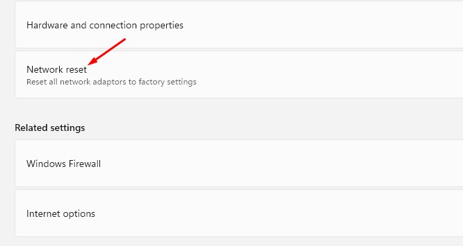 3. クリックしますネットワークのリセット.