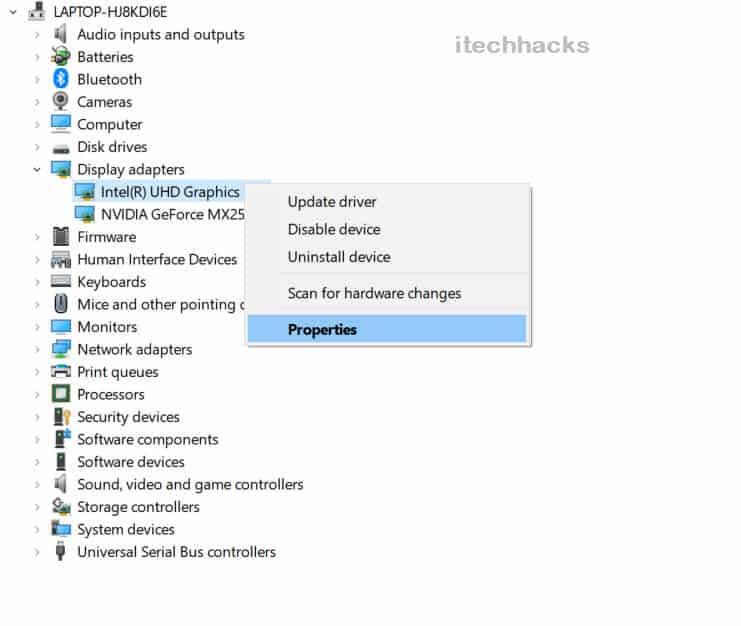 - リスト上のグラフィックドライバーを右クリックし、プロパティ。