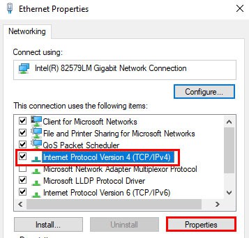 4. 選択TCP/IP バージョン4またはIPバージョン6(TCP/IPv6).