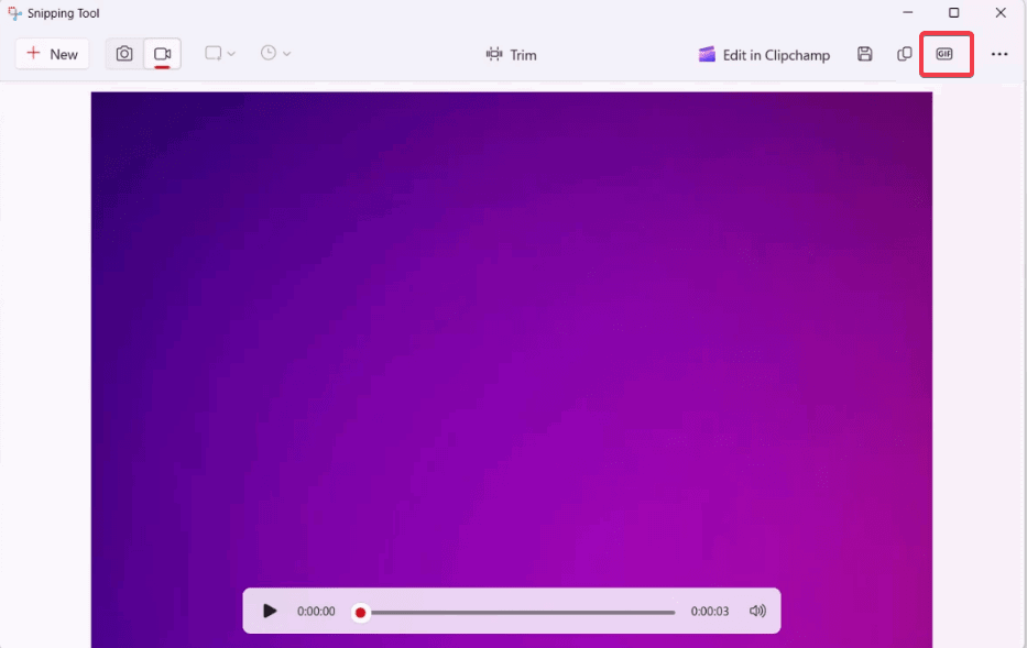 Snipping Tool エディターが開き、GIF右上隅のボタンをクリックします。