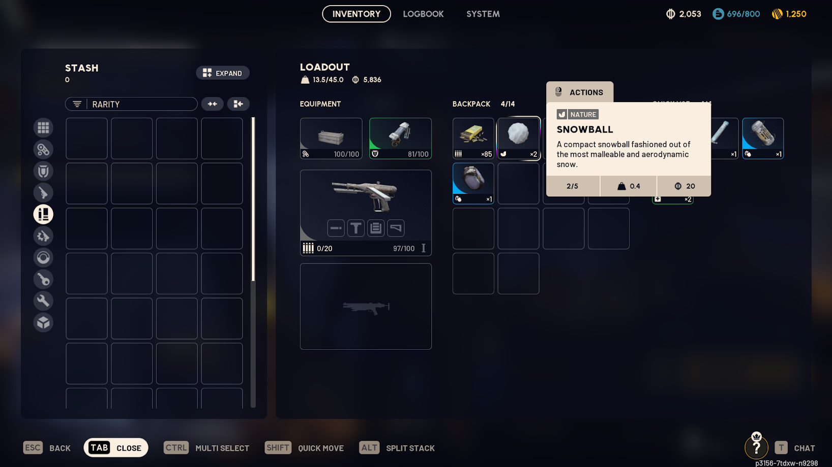 雪玉が作成されると、クイック使用スロットに追加され、すぐに投げたり、戦術的な使用のために一時的に保存したりすることができます。
