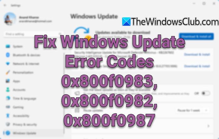 Windows Update は、Windows コンピューターのパフォーマンスとセキュリティを維持するために不可欠です。これらにより、PC がスムーズに動作し、新しい機能にアクセスできるようになり、全体的なパフォーマンスが向上します。しかし、多くの場合、Windows を更新するときに、次のようなさまざまなエラー コードが発生することがあります。0x800f0983、0x800f0982、0x800f0987、など。