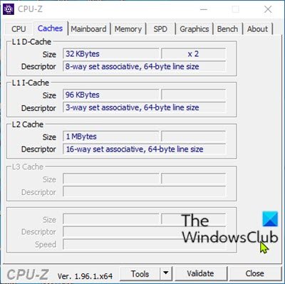 Windows 10 で CPU-Z を使用してプロセッサ キャッシュ サイズを確認するには、次の手順を実行します。