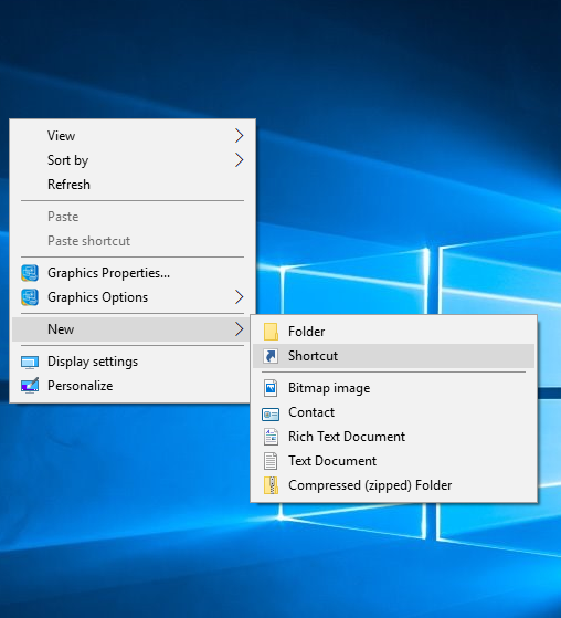 「新規」を展開し、「ショートカット」をクリックして、ショートカットを作成する魔法使い。