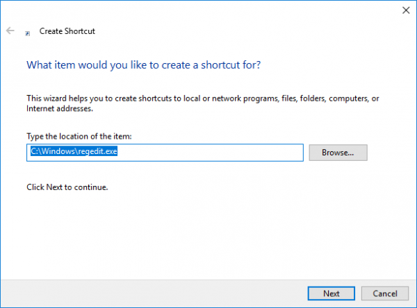 レジストリ エディタを開くためのデスクトップ ショートカットを作成する