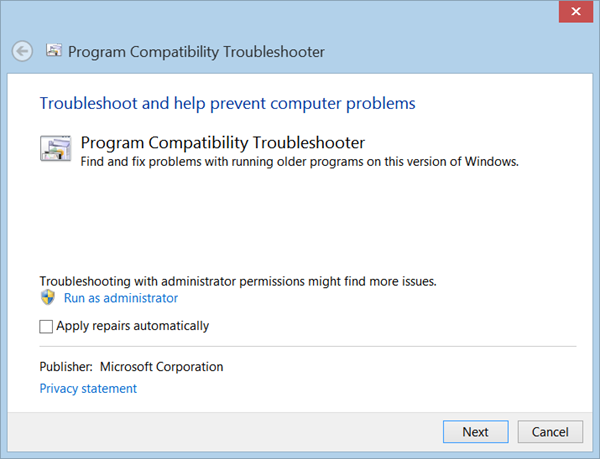 1] プログラム互換性トラブルシューティング ツールを実行します。