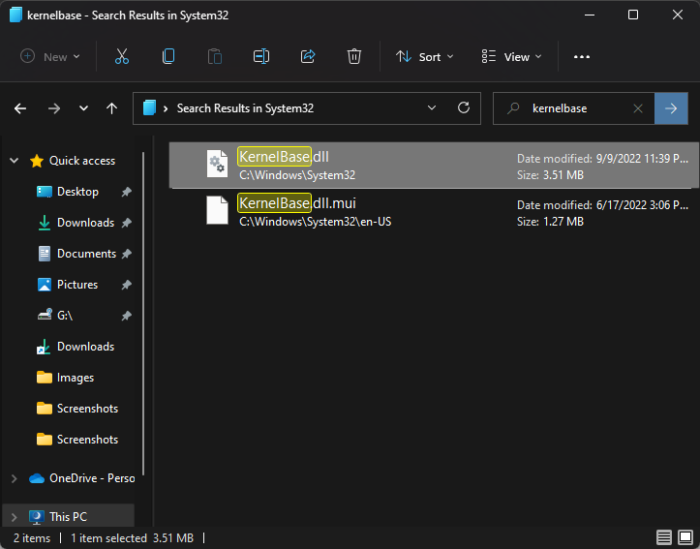 KernelBase.dll ファイルは次の場所にあります。