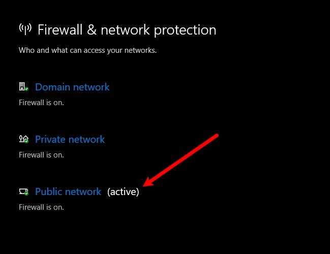 - アクティブなネットワークをクリックし、トグルを使用してファイアウォールを無効にします。
