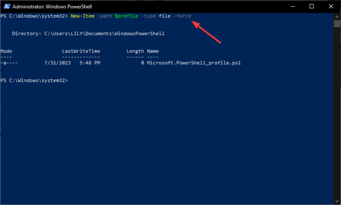 New-Item -ItemType File -Path $PROFILE -Force