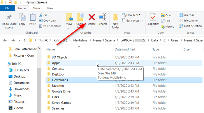 Windows 11/10 のファイル履歴から特定のファイルを手動で削除する必要がある場合、その方法は次のとおりです。