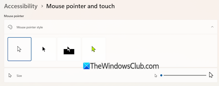 - 次に、マウス ポインター サイズ スライダーを左に移動します。