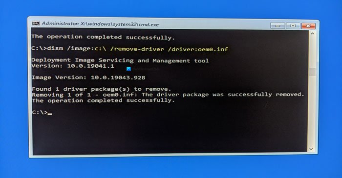 dism /image:c:\ /remove-driver /driver:oem0.inf