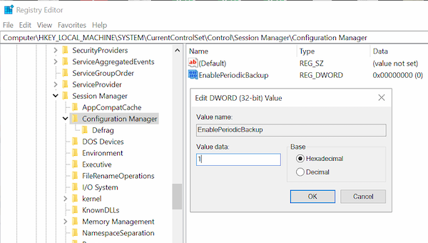 HKLM\System\CurrentControlSet\Control\Session Manager\Configuration Manager