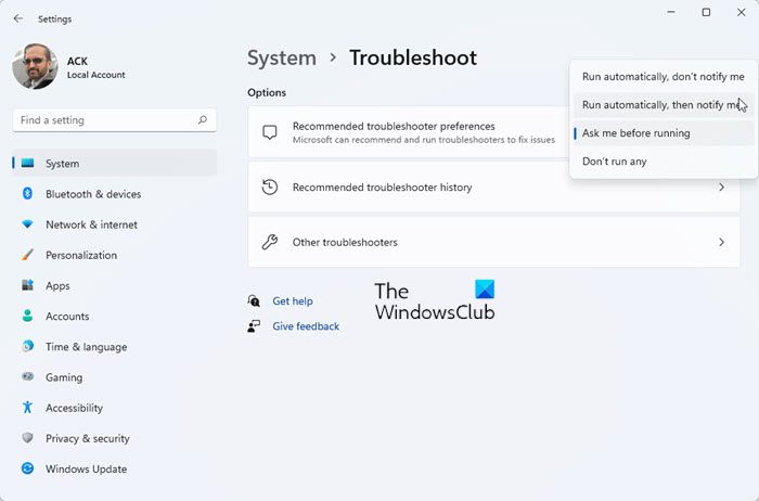 意思Windows 11/10 でトラブルシューティングを自動的に実行できるようにしていますか?それとも物事を自分のコントロール下に置きたいですか?