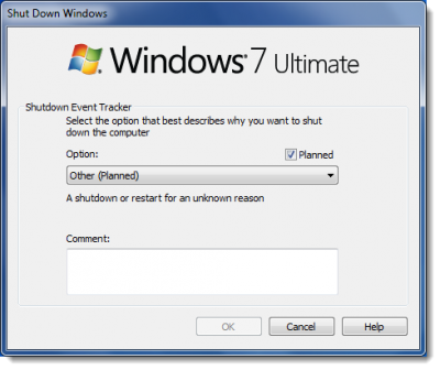 シャットダウンまたは再起動中に、シャットダウントラッカーウィンドウ。