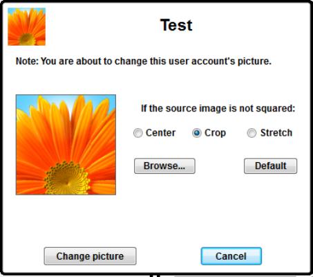 インターフェイス自体の [画像の変更] ボタンをクリックして、ユーザー アカウントの画像を変更することもできます。選択すると、ポップアップが表示され、お気に入りの画像を参照して、新しい画像を中央揃え、切り抜き、またはストレッチするように設定できます。