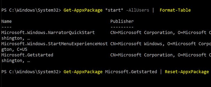 Get-AppxPackage Microsoft.Getstarted | Reset-AppxPackage