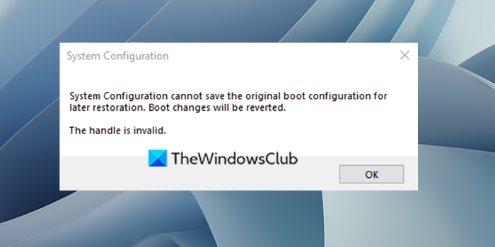見ているならシステム構成は、後で復元できるように元のブート構成を保存できません。ブート変更は元に戻されます。ハンドルは無効です。エラーが発生した場合、このガイドでは、Windows 11 または Windows 10 コンピューターの問題の解決に確実に役立つ解決策をいくつか紹介します。
