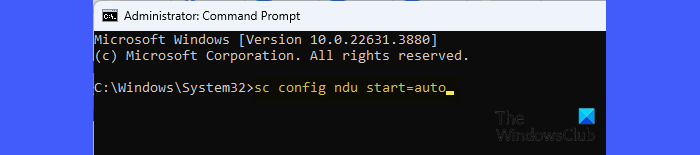 これを修正するには、管理者特権のコマンド プロンプトで次のコマンドを実行して、Windows NDU を再度アクティブにします。