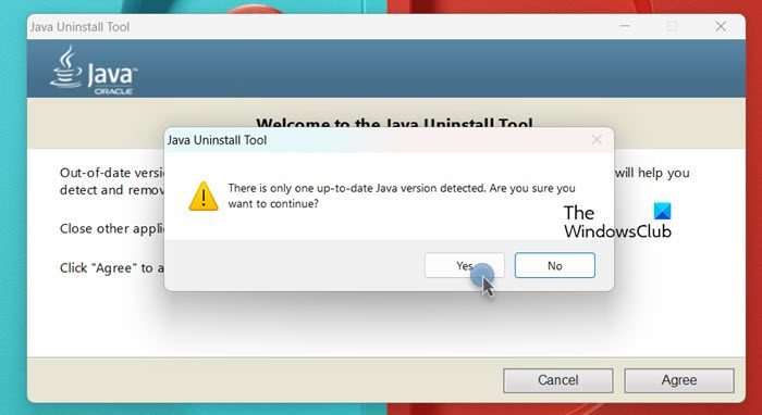 - をクリックしてください利用規約に同意し、続行しますをクリックして Java アンインストーラーのダウンロードを開始します。