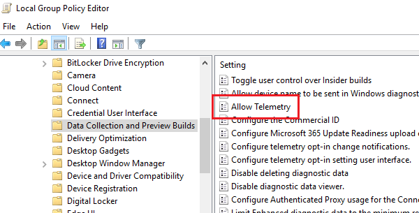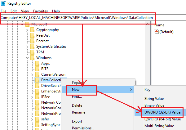 HKEY_LOCAL_MACHINE\SOFTWARE\Policies\Microsoft\Windows\DataCollection