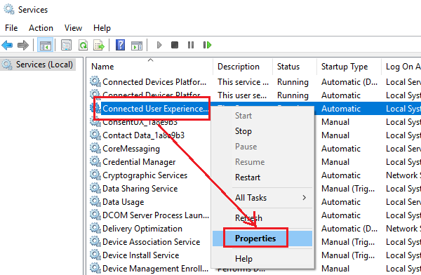 1] Service Manager を使用して Connected User Experience & Telemetry Service を無効にする
