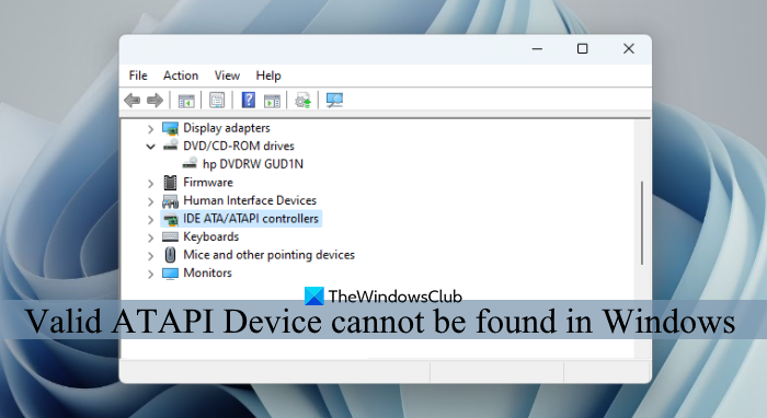修正するにはWindows 11/10 で有効な ATAPI デバイスが見つかりません場合は、次の解決策を使用してください。