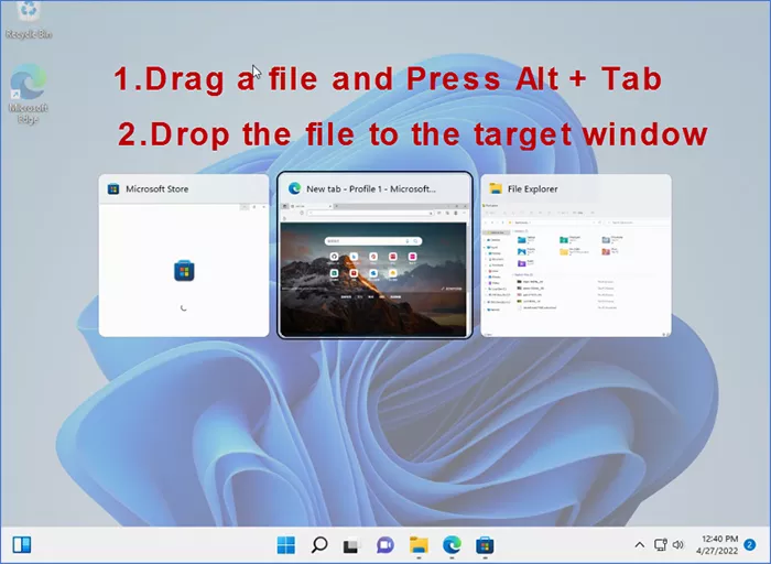 Vilkimas yra naudinga funkcija, leidžianti vartotojams pasirinkti objektą arba teksto dalį ir perkelti jį į norimą vietą ir ten „nuleisti“. Kadangi ši funkcija buvo pašalinta iš „Windows 11“, daugelis vartotojų troško, kaip ją susigrąžinti. Tiesą sakant, paprasčiausias sprendimas yra nuvilkti failą ir paspaustiAlt + Tabkad perjungtumėte langus ir įmeskite failą į tą, kurį norite.