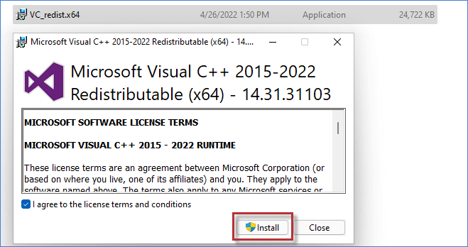 4 veiksmas: dukart spustelėkite atsisiųstą failą, kad jį atidarytumėte. Jei susitiksite su “VCRUNTIME140_1.dll nerastas“ klaida, čia galite atsisiųstiMicrosoft Visual C++ 2015-2022kad tai pataisytų.