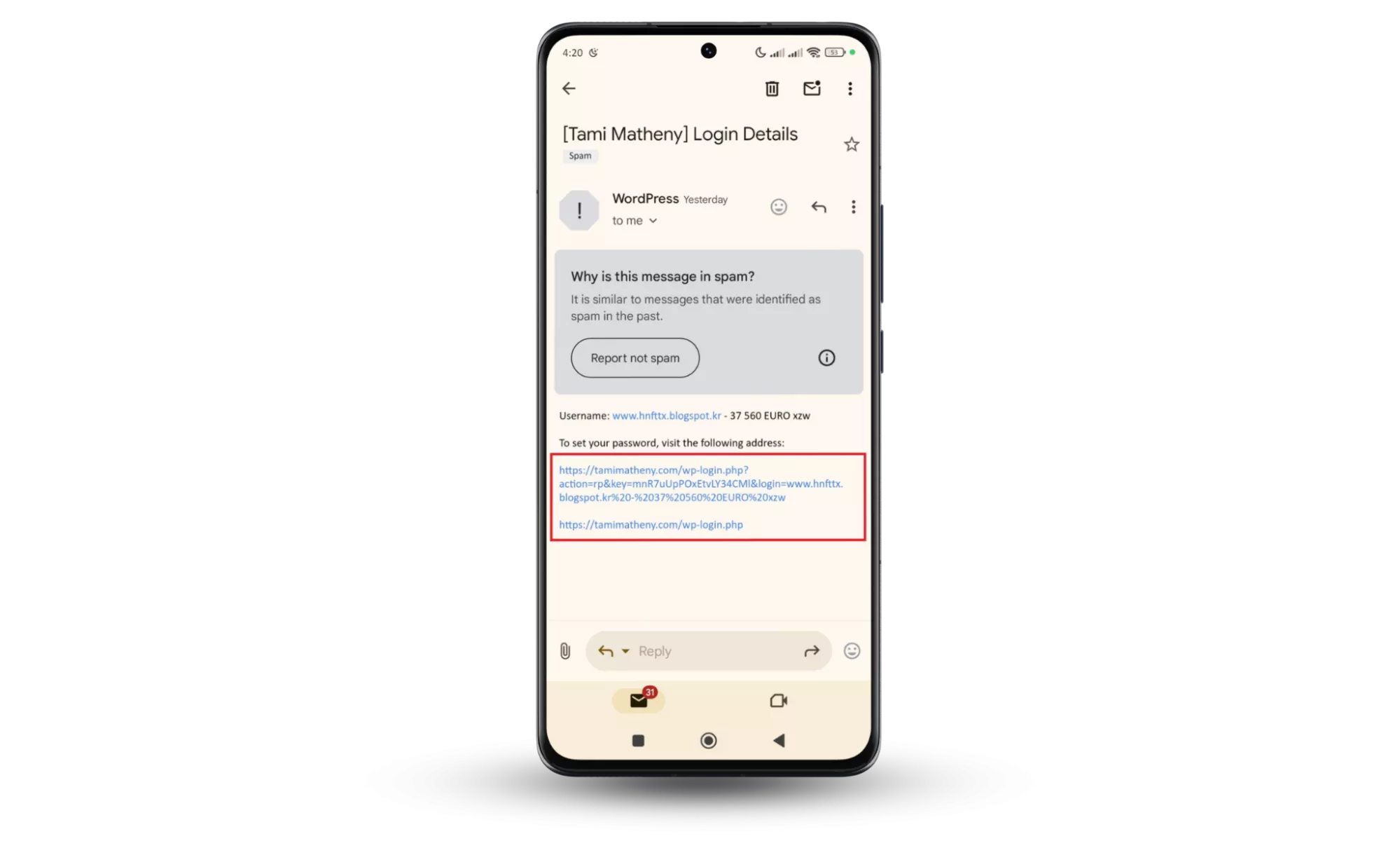 - Sukčiavimo el. laiškaigali ir dažnai yra apgaulingų nuorodų. Ir jei spustelėsite sukčiavimo nuorodą „Android“ arba „iOS“, jie nuves jus į netikras svetaines, skirtas pavogti jūsų asmeninę informaciją arba užkrėsti jūsų įrenginį. Kartais nėra jokių nuorodų, o vietoj to jie prašo atsakyti į el. laišką. Iš ten jie gauna jautrią informaciją iš jūsų.