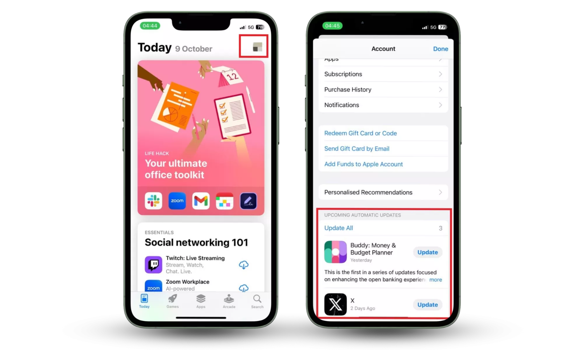 1–3 veiksmai: atidarykite „App Store“ > bakstelėkite profilio piktogramą > slinkite žemyn iki „Atnaujinti viską“.Kaip atnaujinti programas „Android“: