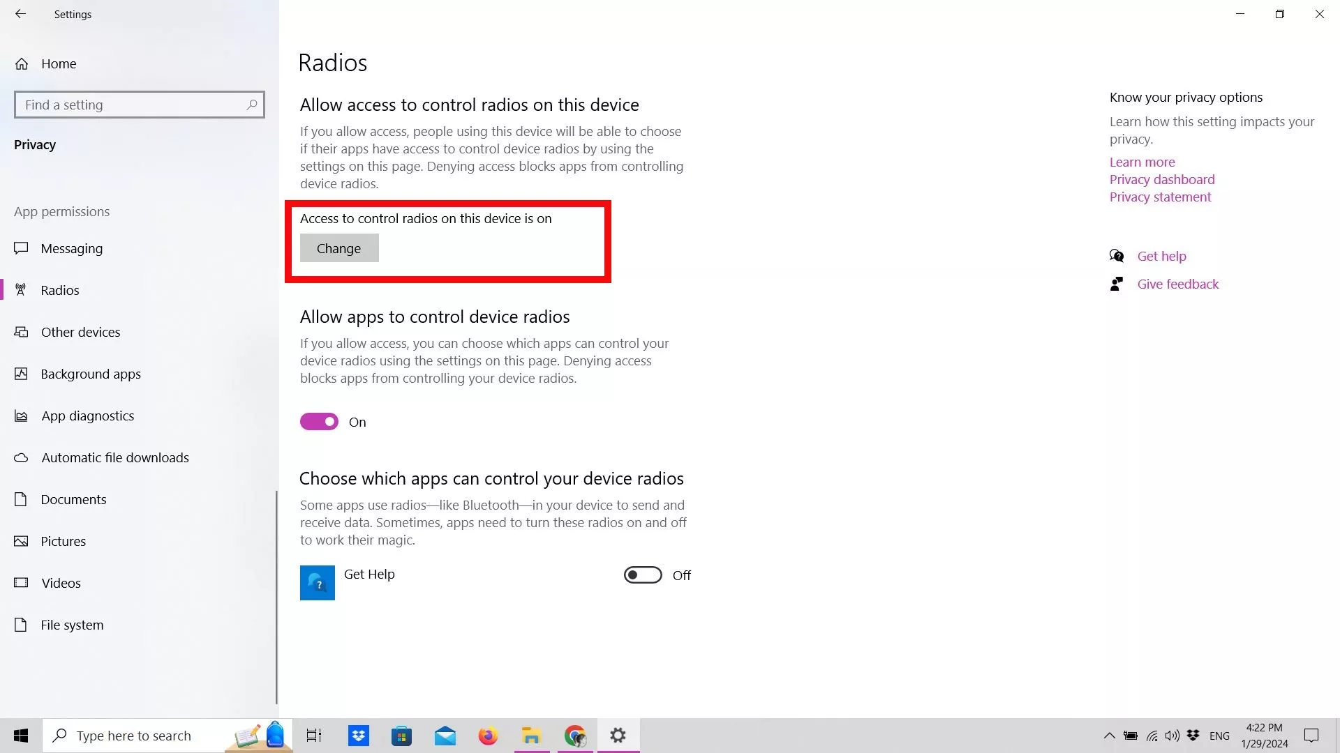 Norėdami išjungti radijo valdiklius sistemoje „Windows 10“: