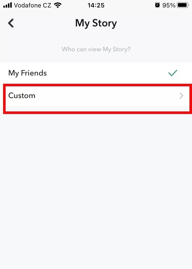 - Arba, jei jūsų buvusiojo nėra tarp jūsų „Snapchat“ draugų, palikite taiMano draugai. Tai visiškai neleis jiems matyti jūsų istorijų, nebent jie turi draugų tarp jūsų draugų.
