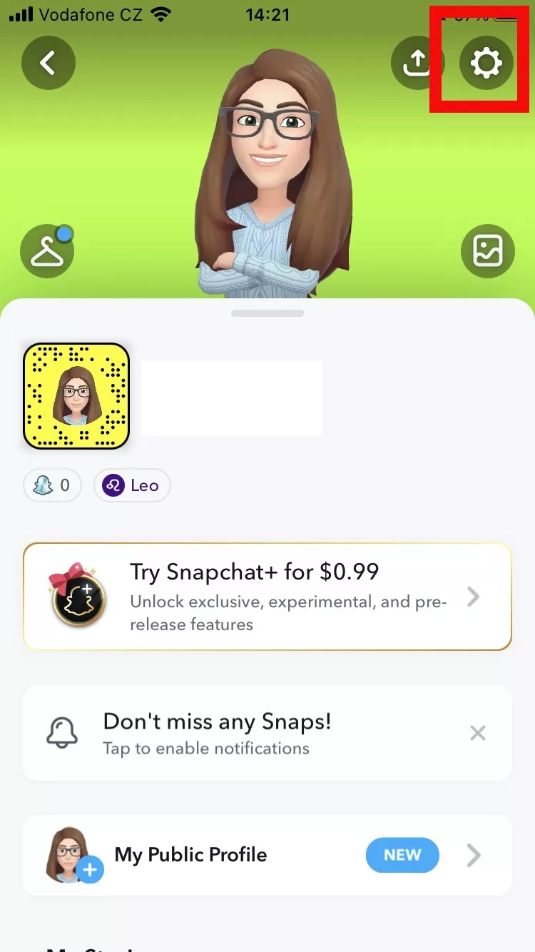 - Eikite į savoprofilįir bakstelėkite krumpliaračio piktogramą, kad įeitumėteNustatymai.