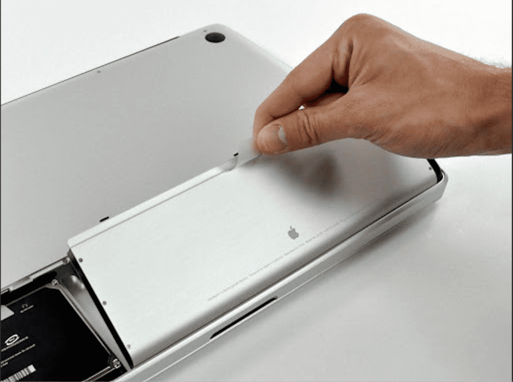 - Išimkite „MacBook“ akumuliatorių.