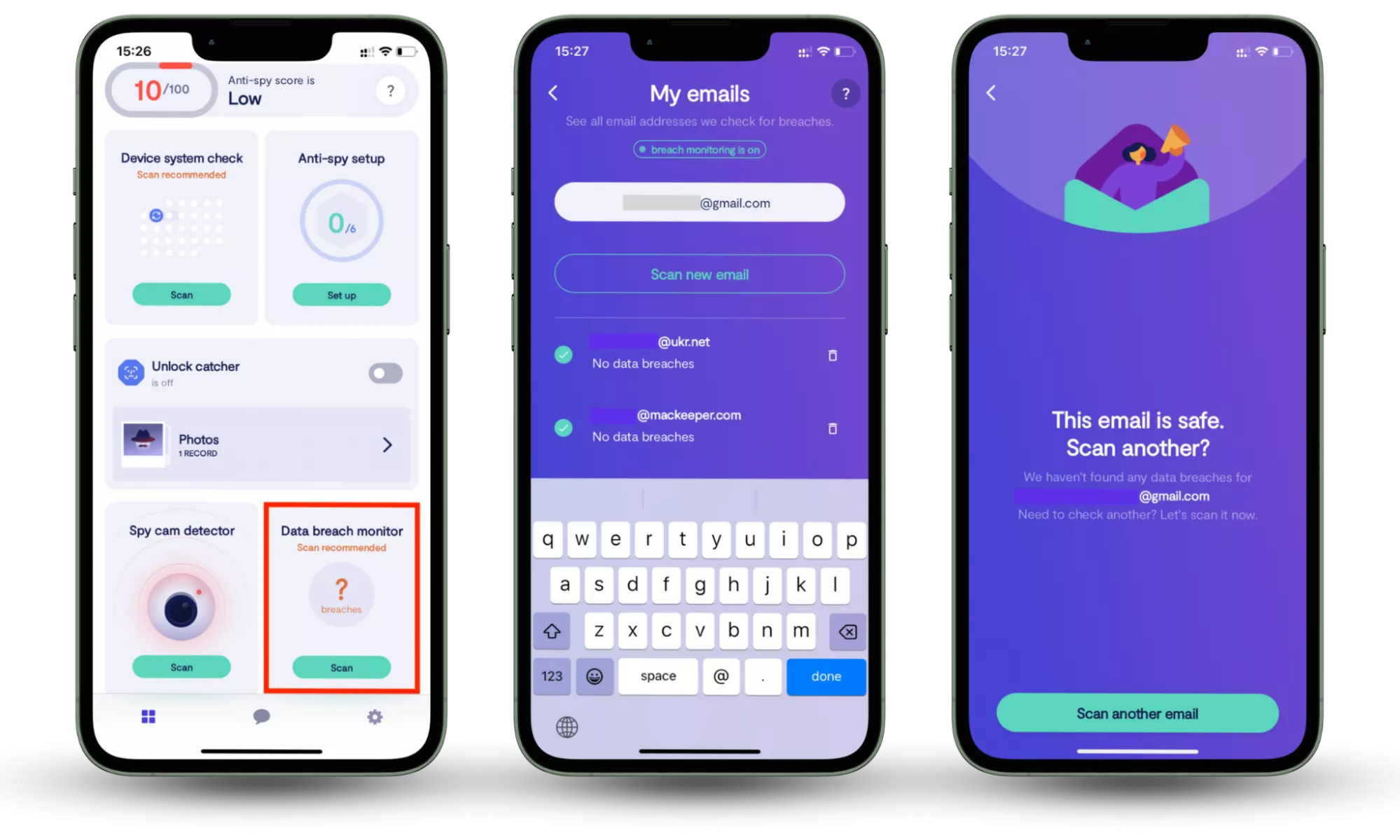 - Įveskite savo el. pašto adresą ir palaukite, kol „Clario Anti Spy“ nuskaitys internetą, ar nėra pažeidimų, tada vadovaukitės instrukcijomis, kad apsaugotumėte paskyras.