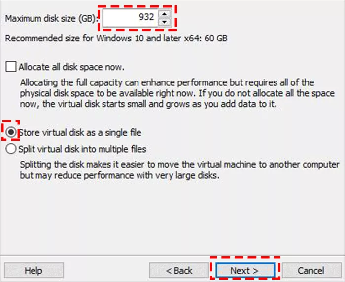 14 veiksmas: nurodykite disko talpą, kurią norite, kad šis diskas būtų, ir spustelėkite „Kitas”.