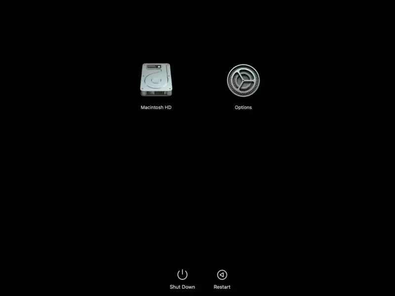 Apple Silicon Mac kompiuteriams: iš naujo paleiskite „Mac“ ir laikykite nuspaudę maitinimo mygtuką, kol pamatysite paleidimo parinktis, tada pasirinkite USB diską.