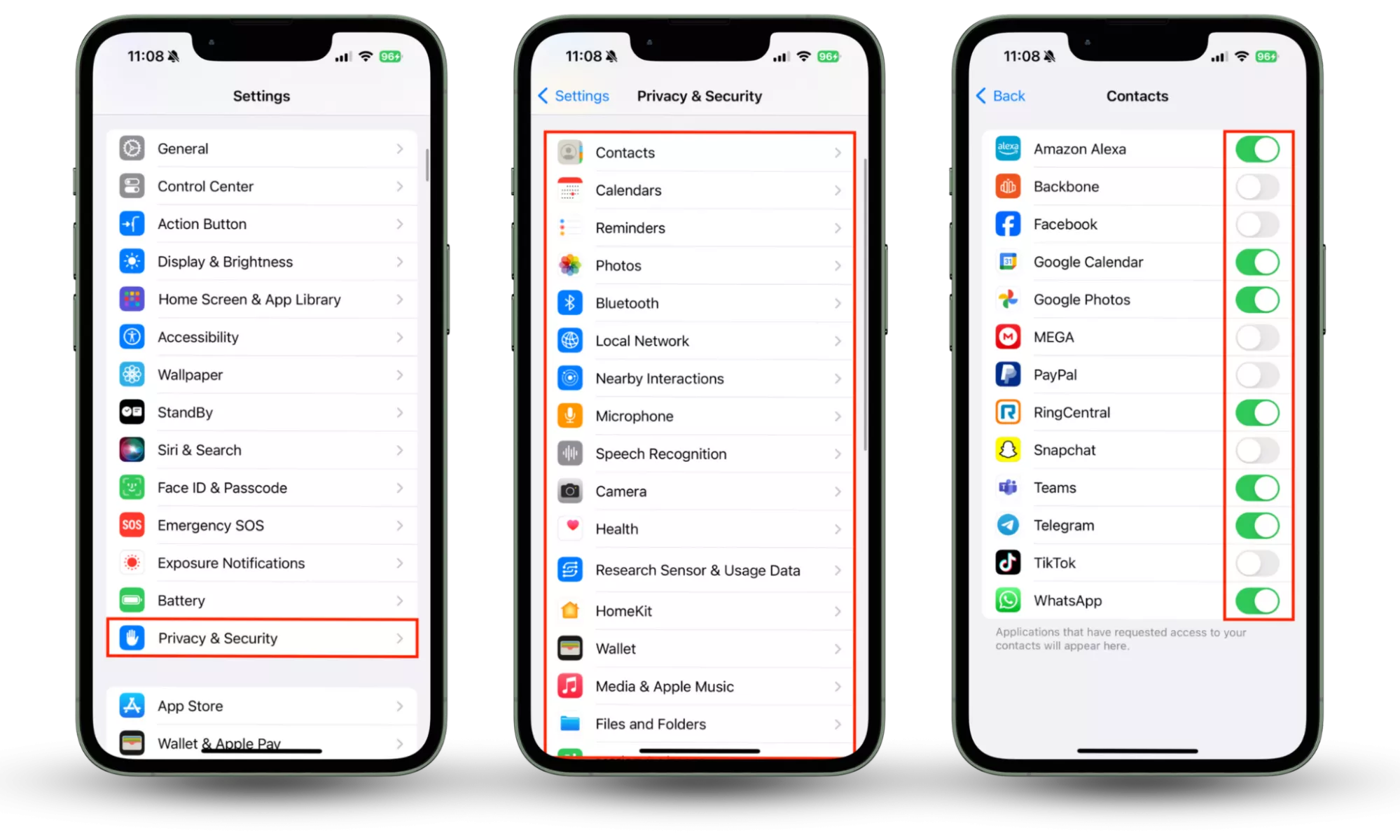 Šnipinėjimo programos dažnai naudoja įrenginio funkcijas, pvz., fotoaparatus, mikrofonus ir GPS, kad galėtų jus šnipinėti. Kiti rinks turinį ir informaciją iš jūsų nuotraukų, kontaktų, failų ir kt. Norėdami tai sustabdyti, patikrinkite programos leidimus ir užblokuokite programas, kuriomis nepasitikite.Štai kaip: