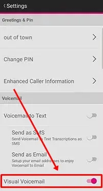 3. Bakstelėkite perjungimo mygtuką, kadĮgalintiparinktį „Visual Voicemail“.