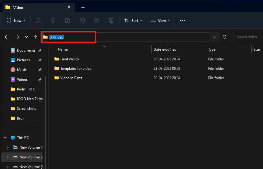 - Patekę į aplanką, spustelėkite adreso juostą viršuje ir nukopijuokite aplanko adresą.