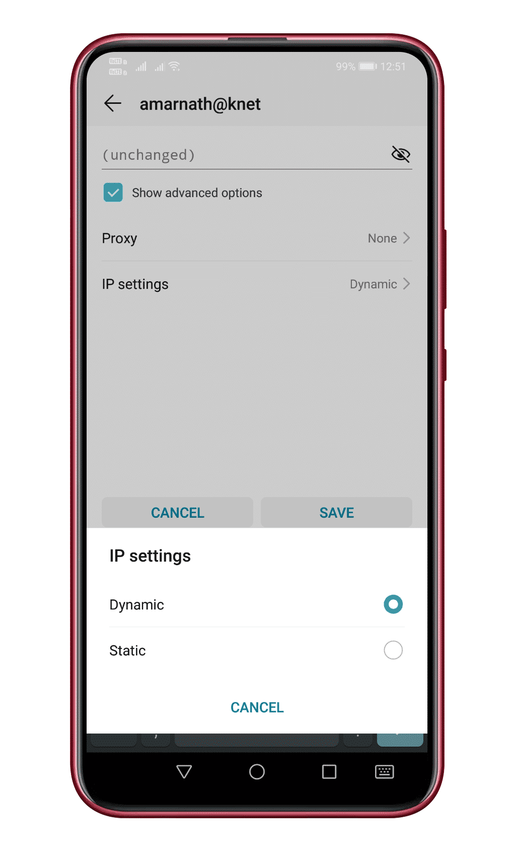 - Bakstelėkite išskleidžiamąją piktogramą už IP nustatymų ir pasirinkiteStatinis