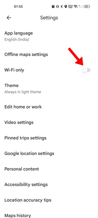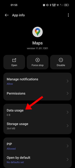Galite sumažinti „Google“ žemėlapių duomenų naudojimą išjungę programos fono duomenų naudojimą. Norėdami sužinoti daugiau apie tai, vadovaukitės penktuoju straipsnyje aprašytu metodu.