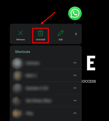 1. Raskite WhatsApp irBakstelėkite ir palaikykite programos piktogramąkol pamatysite parinktį.