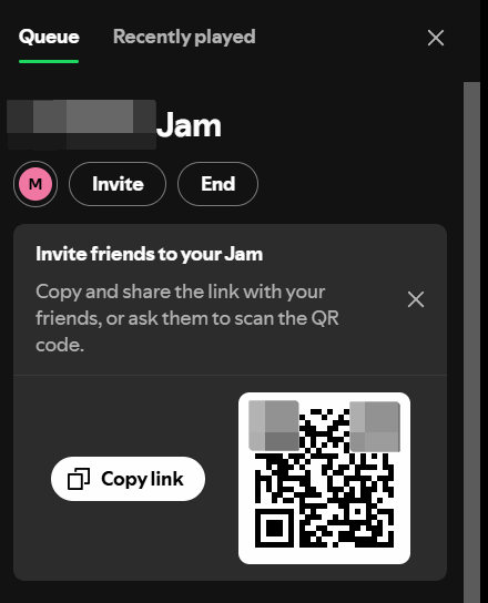 Kai tik paspausitePradėkite „Jam“., „Spotify“ sukurs parinktis, leidžiančias pakviesti kitus prisijungti prie jūsų „Jam“. Norėdami tai padaryti, turite keletą parinkčių: