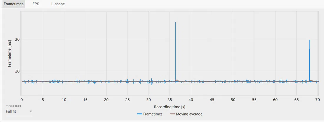 FPS yra bendras per sekundę sugeneruotų kadrų skaičius, o kadro laikas yra bendras laikas milisekundėmis, per kurį sukuriamas vienas kadras. Idealioje sąrankoje 60 FPS turės 16,67 ms kadrų laiką (1000 ÷ 60). Kad žaidimas būtų sklandus, šis kadro laikas turi išlikti pastovus, pvz., 16,67 ms, kai naudojamas 60 FPS, arba 6,94 ms, kai naudojamas 144 FPS. Jei kadro laikas nėra nuoseklus, pastebėsite mikčiojimą, kuris gali labai trikdyti.