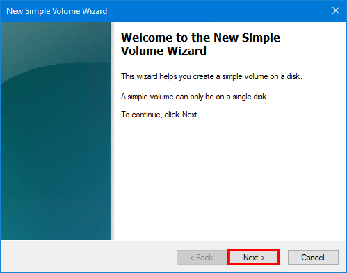 Klik met de rechtermuisknop op de schijf die is geïnitialiseerd en selecteerNieuw eenvoudig volume…