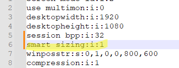 Om de dynamische schaalmodus in te schakelen, voegt u de volgende regel toe aan het *.RDP-bestand op de client: