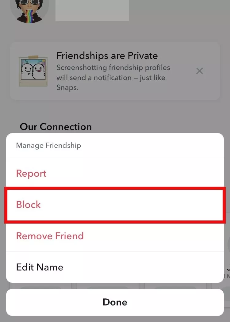 Stap 4: Selecteer in Vriendschap beheren de optie Blokkeren om je ex te blokkeren.In Privacybeheer kun je wijzigen wie contact met je kan opnemen op Snapchat en wie je verhaal kan bekijken.